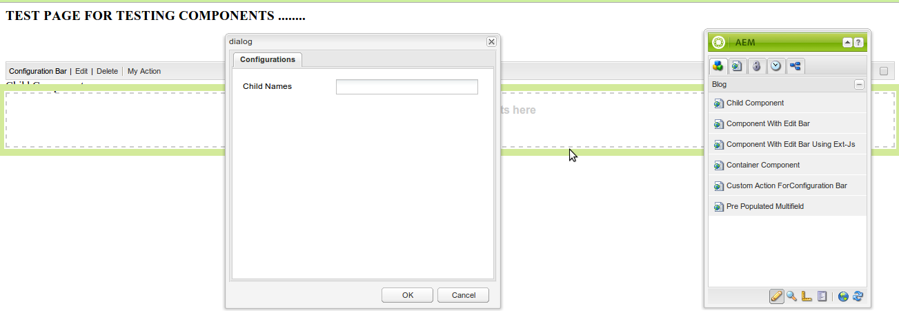 In my last post, I explained, how to create configuration bar in CQ using cq:EditConfig node as well as using Ext – JS. When I was doing that R & D a question come in my mind that using cq:actions property of cq:EditConfig node, we are restricted to used only few operation i.e. EDIT, DELETE, COPYMOVE, INSERT & TEXT.
